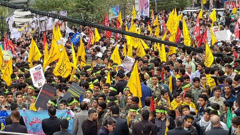 テヘランをはじめとするイランの各都市で、数百万人の児童・生徒・学生やそのほかの国民が参加し、イラン暦アーバーン月13日の毎年恒例の行進が行われました。