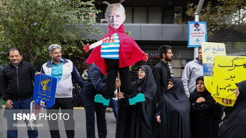 この声明では、イラン国民や、同国のイスラム革命防衛隊に対するアメリカ大統領の侮辱的な発言、そしてペルシャ湾でアラビア湾という誤った呼称を使っていることが非難されました。なお、今回のデモ行進に当たり3500人以上の報道陣が取材を行っています。