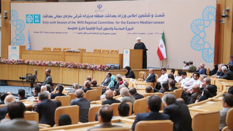 ローハーニー大統領は15日火曜、テヘランで開催された WHO世界保健機関の第66回東地中海地域保健相会議において、「アメリカは、経済テロという、人類に対する犯罪を引き起こした」と強調し、「イラン人の学者や研究者、起業家、製造業者は、かつてない経済的圧力や不当な制裁にもかかわらず、完全な自給自足に向かって歩んでいる」と述べています。