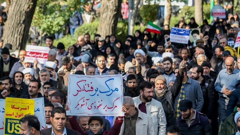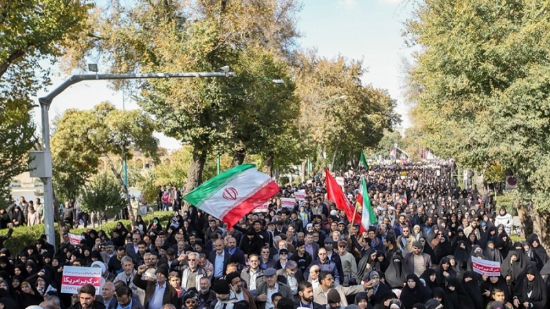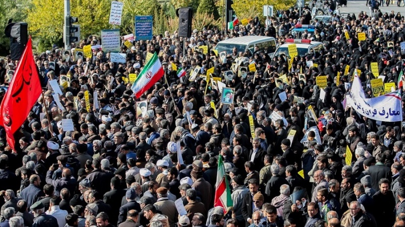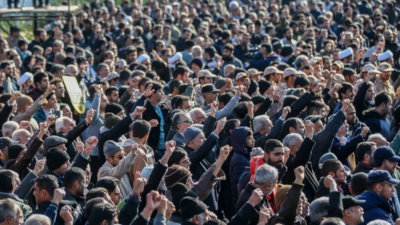 イランでは中部イスファハーン、南部シーラーズ、南東部ケルマーン、南部バンダルアッバース、南西部ヤースージ、テヘラン南方のゴム、南東部ザーヘダーン、テヘラン東部シャーフルードの各地で21日木曜、大行進が実施され、参加者らが「アメリカに死を」、「イスラエルに死を」、「暴徒らに死を」などのスローガンを叫んでイランイスラム革命最高指導者ハーメネイー師の立場を支持しました。