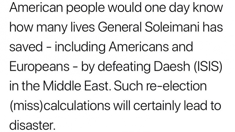 アラーグチー次官は3日金曜、ツイッター上で、次期米大統領選に触れ、「現職トランプ大統領の再選は、疑いなく悲惨な結果につながるだろう」と述べました。