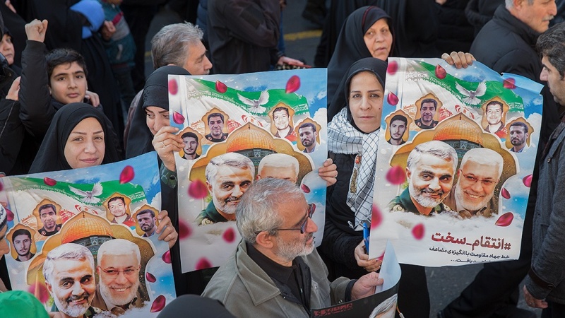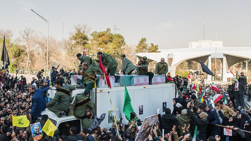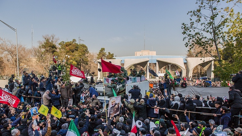6日月曜テヘランで、大勢の人々が参列する中、殉教したイスラム革命防衛隊ゴッツ部隊のソレイマーニー司令官らの葬儀が執り行なわれました。