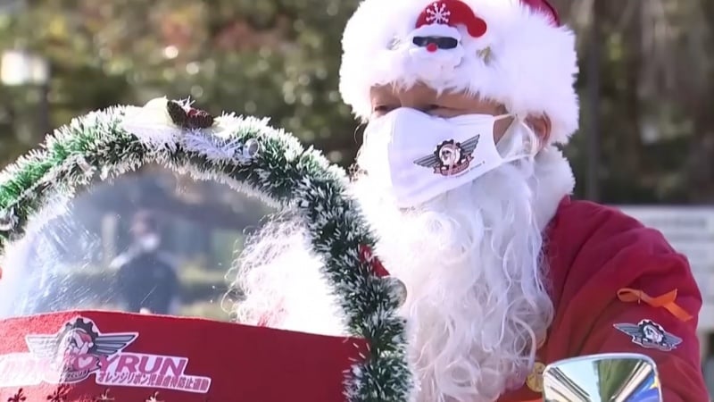 ハーレーに乗るサンタが都内をパレード