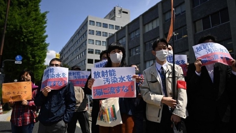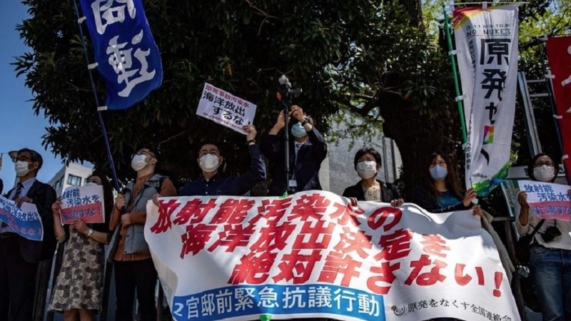 フランス通信によりますと、日本政府が東日本大震災で被災した東京電力(TEPCO)福島第1原子力発電所から出る放射性物質を含む処理水を、海洋に放出する方針を固めたことを受けて、これに反対する市民団体などが12日月曜、都内の首相官邸前で抗議デモを行いました。