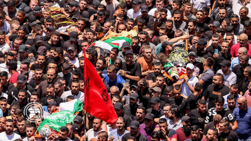 パレスチナ・ジェニンの難民キャンプへのシオニスト政権イスラエル軍の攻撃で殉教した人々の埋葬式が行われました。2日間にわたるこの攻撃では、パレスチナ人が13人殉教し、負傷者も100人以上となりました。