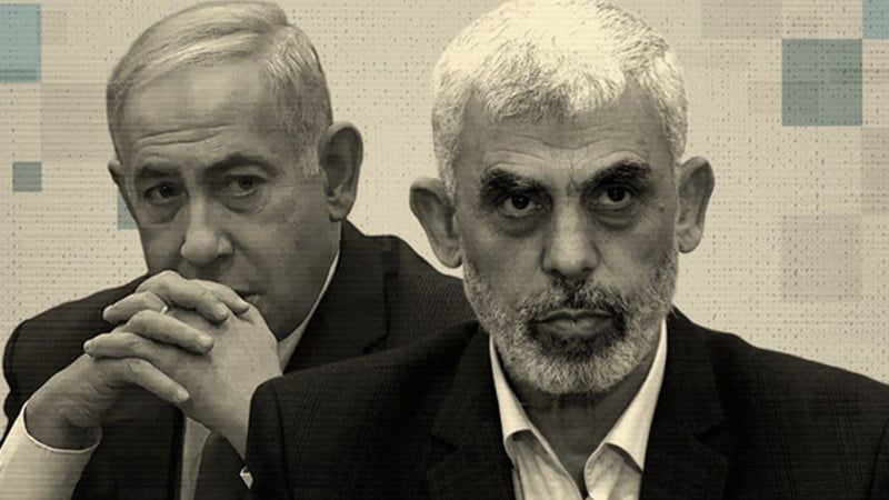 • ネタニヤフ・イスラエル首相(左)と故ヤフヤー・シンワル元ハマス政治局長