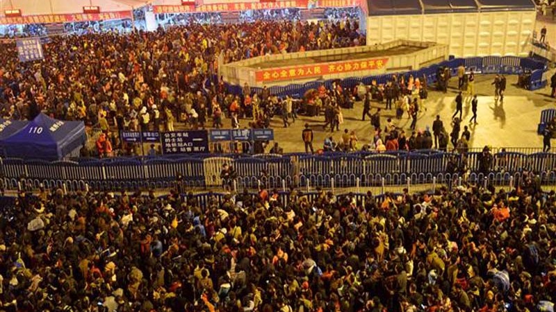 中国で、旧正月の休暇シーズンを前にターミナルは帰省ラッシュ(乗客の波)