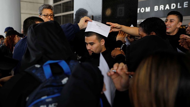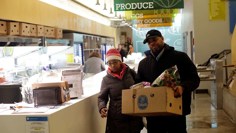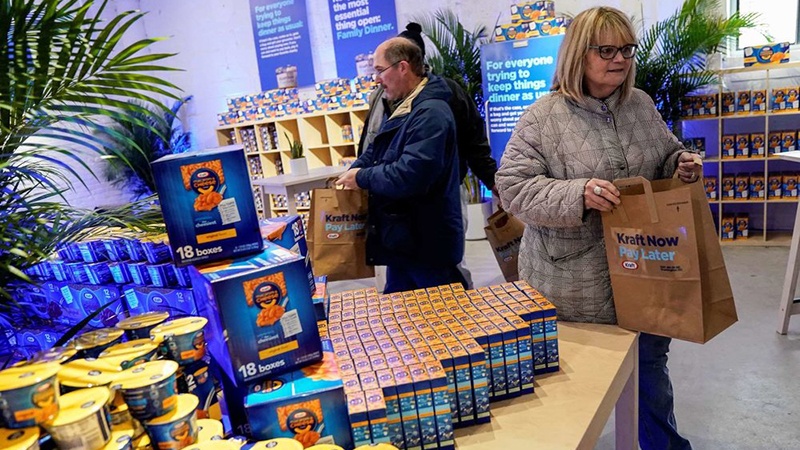 米政府職員が、慈善団体の食料配給に殺到 (写真)