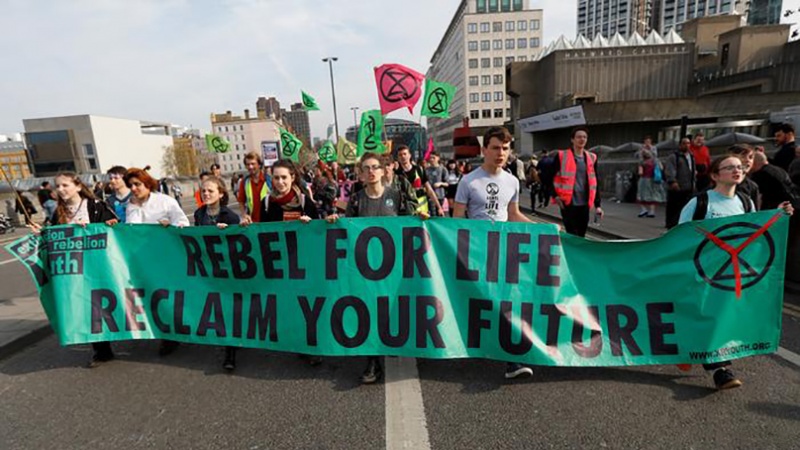 ロンドンでの環境保護活動家によるデモは、地球温暖化に対する政治家の無関心に抗議する形で、今月15日から始まりました。