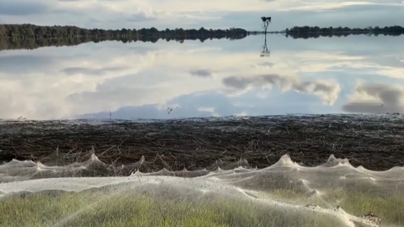 今月洪水に見舞われた豪ビクトリア州ギプスランドで、街がクモの巣に覆い尽くされる現象が発生しています。