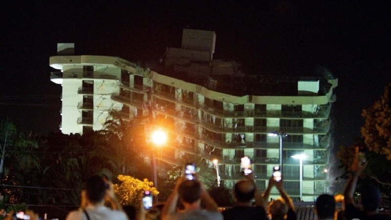 米フロリダ州で、崩落した集合住宅の残存部分を爆破解体