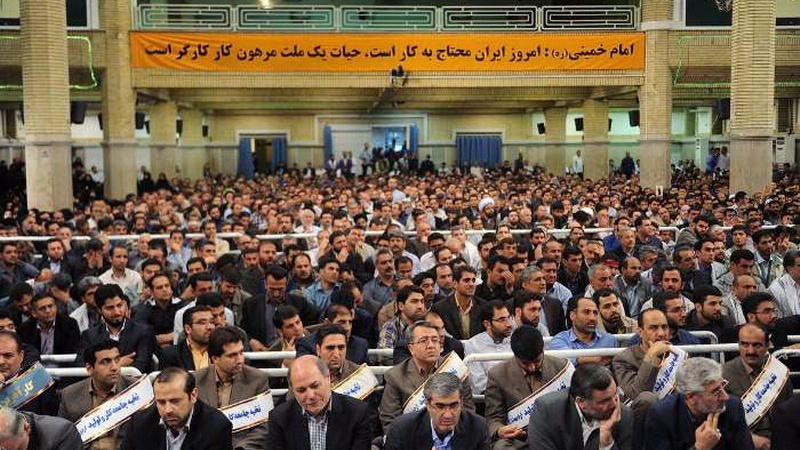 Ислам революциясының мәртебелі жетекшісі сондай- ақ түрлі елдерде жұмысшылардың саяси және әлеуметтік рөл атқаруына және революцияның алғашқы күндерінен дұшпандардың жұмысшы қоғамын ислам республикасына қарсы қоюға жасаған ұмтылыстарына сілтеме жасап: «Сондай талпыныстарға қарамастан, жұмысшылар әрдайым жүйеге жақтас болып, оны қолдады. Шын мәнінде, жұмысшылардың діндар әрі белсенді қоғамы осы жылдары елдің дұшпандарына соққы берді» деді.