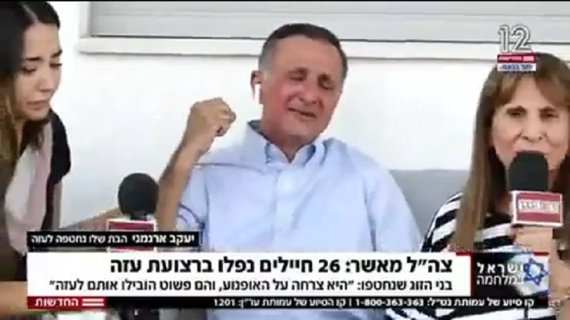 Сионистік әскерилердің бірінің әкесі Израильдің 12-арнасы түсірген тікелей эфирде көзіне жас алып, ұлын Газадан қайтаруды сұрады.