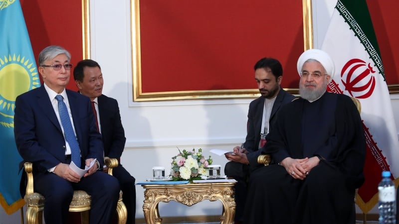 Иран Президенті баспасөз қызметінің мәліметі бойынша, Еуразия Экономикалық одағы басшыларының саммитіне қатысу үшін Арменияда сапармен жүрген Хасан Рухани сейсенбі күні Қазақстан Президенті Қасым-Жомарт Тоқаевпен кездесуінде Теһранның Нұр-Сұлтанмен саяси, экономикалық, ғылыми және мәдени салалардағы қарым-қатынастарын кеңейтуді қолдайтынын қуаттап: "Иранның Еуразия Экономикалық одағымен ынтымақтастығын бастауы Одақ мүшелерінің өзара, сондай-ақ Қазақстан мен Иранның экономикалық қарым-қатынастарын кеңейту үшін өте қолайлы мұрсат",- деді. Рухан сонымен бірге Каспий теңізінің жағалауындағы елдер үшін бейбітшілік пен достық теңізі және ешбір шетелдік күштің бұл теңізде орналаспауы керектігін баса айтып: "Иран Каспий теңізінің қоршаған ортасын қорғау және жағалауындағы елдердің теңіздің туристік және экономикалық әлеуетін пайдалануына жағдай жасауға дайын",- деді.