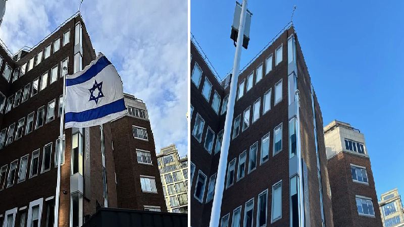په ډوبلین کې د صهیونیسټانو د سفارت د تړلو په اړه د آیرلینډ د حکومت له فیصلې وروسته، د دغه رژیم بیرغ د دغه سفارت له ودانۍ څخه ښکته کړل شو.