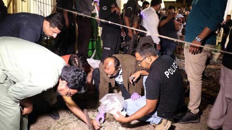 د سند صوبې د پولیسو مشر هم د پيښې د ځاې جاج اخیستی او بم شنډونکې اداره وايي چې په چاودنه کښې تر درې سوه ګرامه پورې چاودونکي توکي کارول شوي دي.