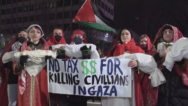 د امریکا په بوسټن ښار کښې هم د فلسطین پلویانو پرون مظاهرې وکړې او هغوې د اوربند غوښتنه وکړه او د فلسطین بیرغ یې ورپوه.