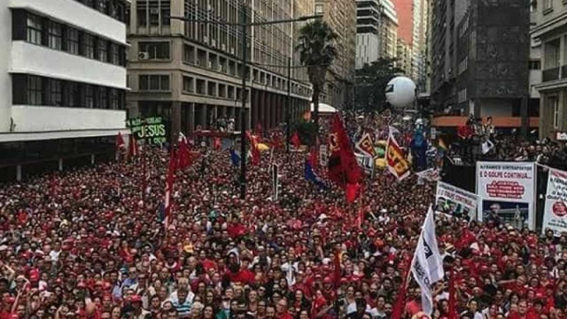Pars Today- Manifestantes de todo o país foram as ruas prestar seu apoio ao ex-presidente Lula nesta quarta-feira(24), dia que o TRF-4 de Porto Alegre decide o recurso de Lula em relação à primeira sentença de Moro no caso do triplex no Guarujá.