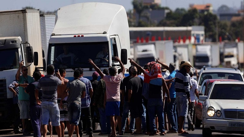 Silva também tinha entregas de embalagens plásticas para fazer Distrito Federal. Ele é de Timbó (SC) e está há 15 dias na estrada. Até a quarta-feira passada (30) participava de um bloqueio com cerca de 300 caminhões na rodovia BR-153, próximo a Aparecida de Goiânia (GO), que segundo ele foi dispersado "pelo Exército na base da pancada".