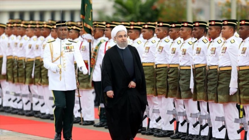 Rouhani foi bem recebido no Palácio presidencial, cidade Putrajaya (a capital administrativa de Malásia), nesta sexta-feira pelo premiê malásio, estavam também presentes outras altas autoridades e a embaixadora de Irã em Kuala Lumpur, Marzie Afkham, entre outras.