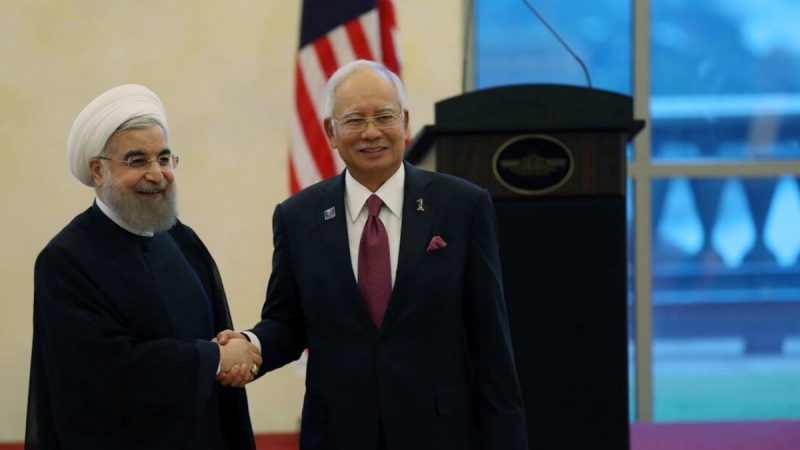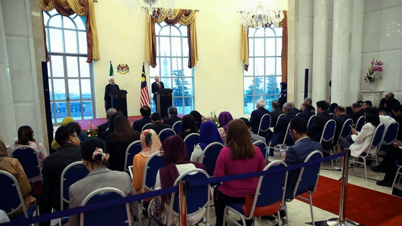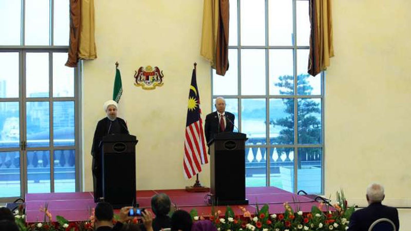 Hassan Rouhani, Presidente da República Islâmica do Irã ", Najib Tun Razak," primeiro-ministro malaio na sexta-feira à noite em uma conferência de imprensa conjunta responderam às perguntas dos jornalistas.