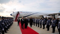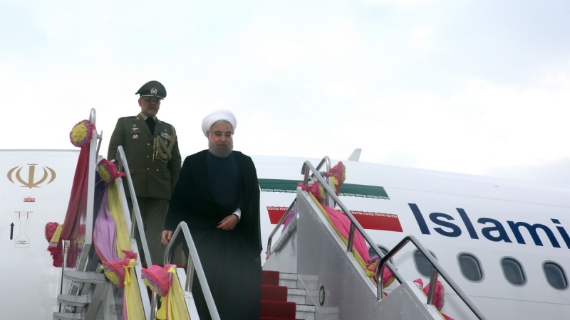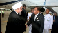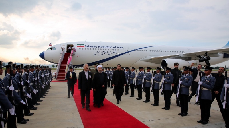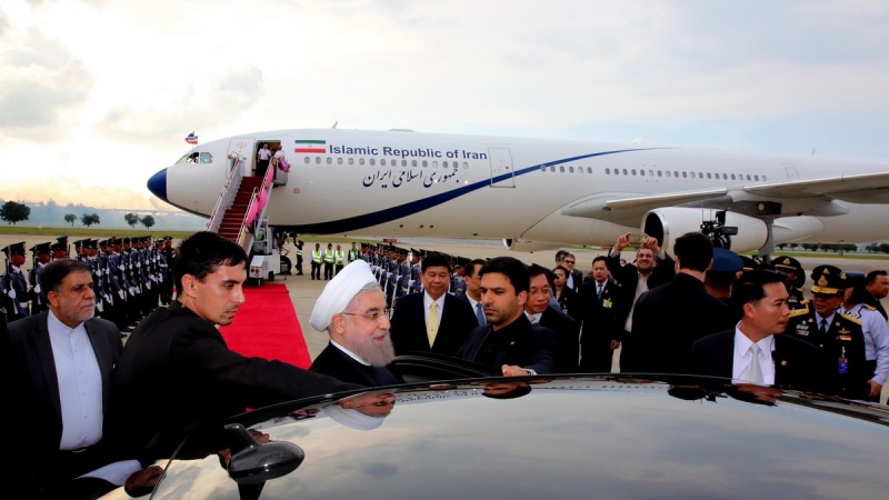 O presidente iraniano Hassan Rohani na terceira etapa da viagem aos países do Sudeste Asiático, no sábado (horário local) na cabeça de uma delegação política e econômica chegou ao Aeroporto Internacional Bangkok.