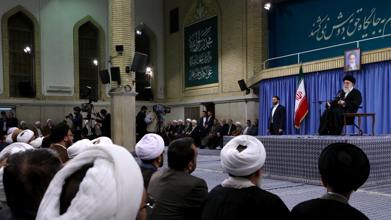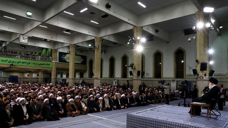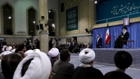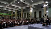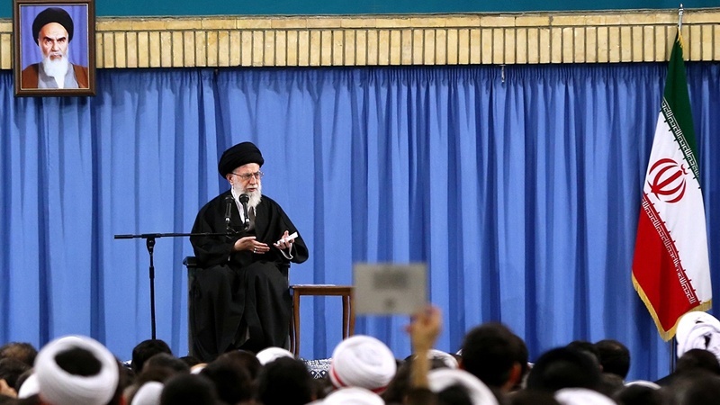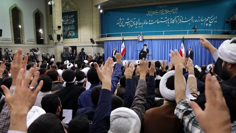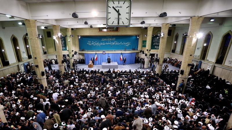 Líder da Revolução Islâmica do Irã, o aiatolá Seyed Ali Khamenei sobre reúne-se com cidadãos de Qom, uma cidade no centro do Irã, em 8 de janeiro de 2017.