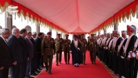Após os hinos nacionais do Irã e Omã foram jogados, Rouhani e Sultão de Oman introduzido membros de delegações de alto nível.