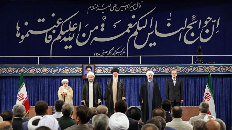 Os chefes dos três ramos do poder no Irã, oficiais militares, Ulema, acadêmicos e uma série de embaixadores e representantes estrangeiros participaram da cerimônia na Mesquita do Imam Khomeini em Teerã.