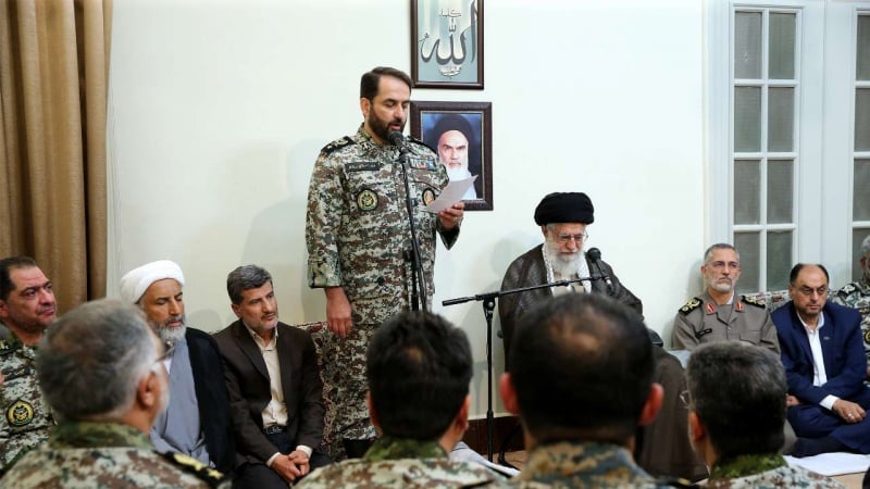 Aiatolá Khamenei fez as declarações em uma reunião com o general de brigada Farzad Esmaili, comandante da base de defesa aérea Khatam al-Anbiya do exército iraniano e outros comandantes seniores e funcionários da base em Teerã no domingo.