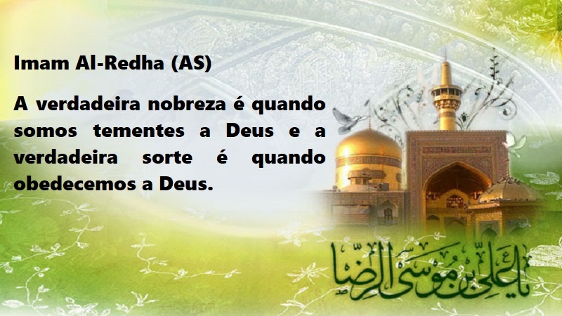 Manifestamos as nossas condolências a toda a nação islâmica e todos os homens e mulheres livres do mundo no mês do aniversário de martírio do Imam Ali ibn Mousa Ar-Redha. Data especificamente relembrada no dia 19 de Novembro de 2017 (30 de Safar de 1439 H.L). Que a paz e as bênçãos de Deus estejam com ele!