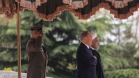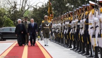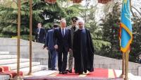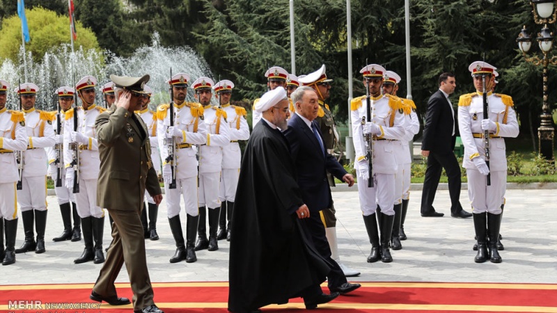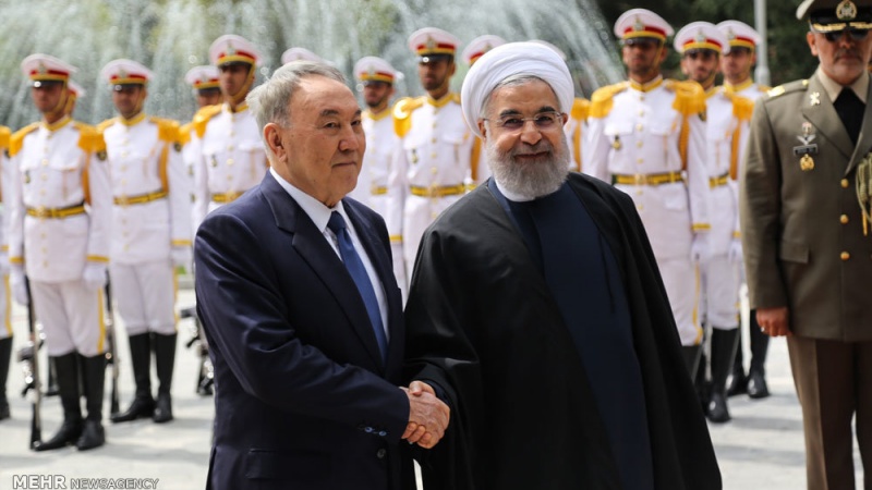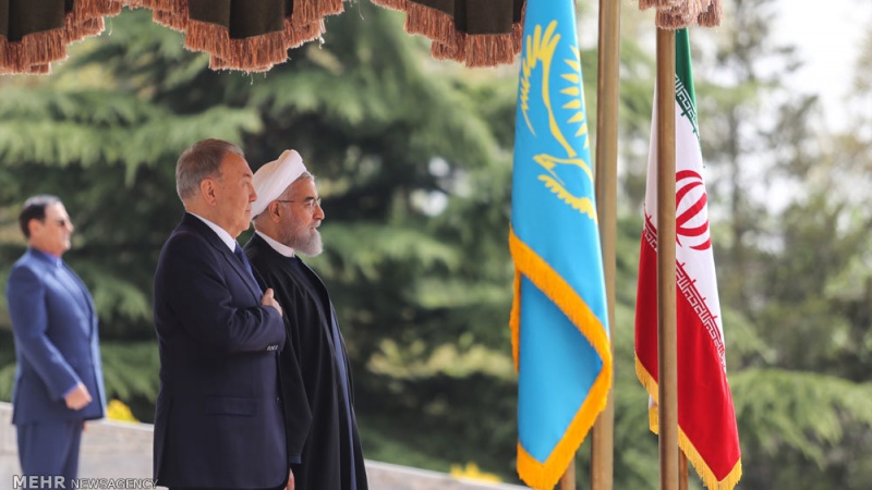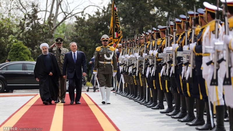 O presidente Hassan Rohani recebeu nesta segunda-feira o presidente do Cazaquistão, Nursultan Nazarbayev, com uma cerimônia oficial de boas-vindas, no Palácio do Sadabad.