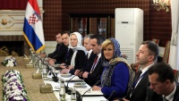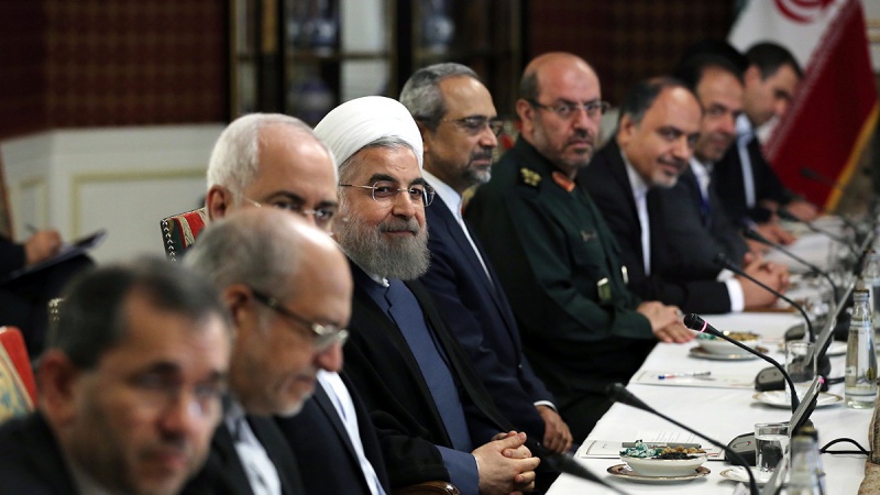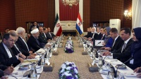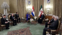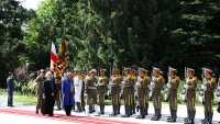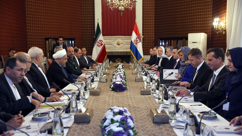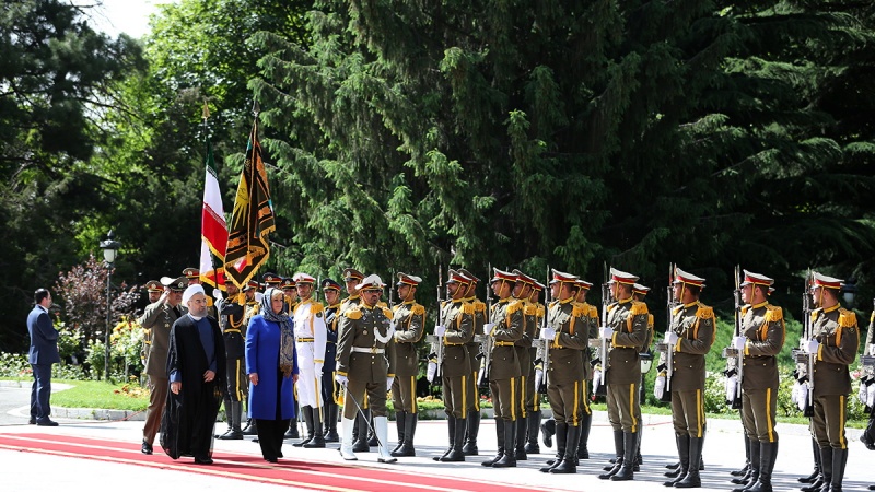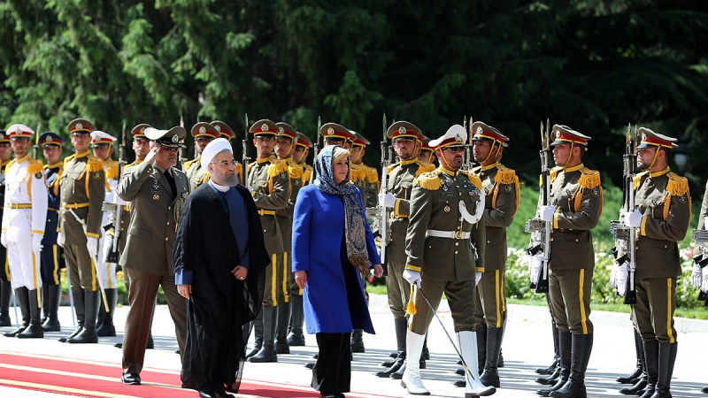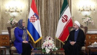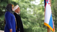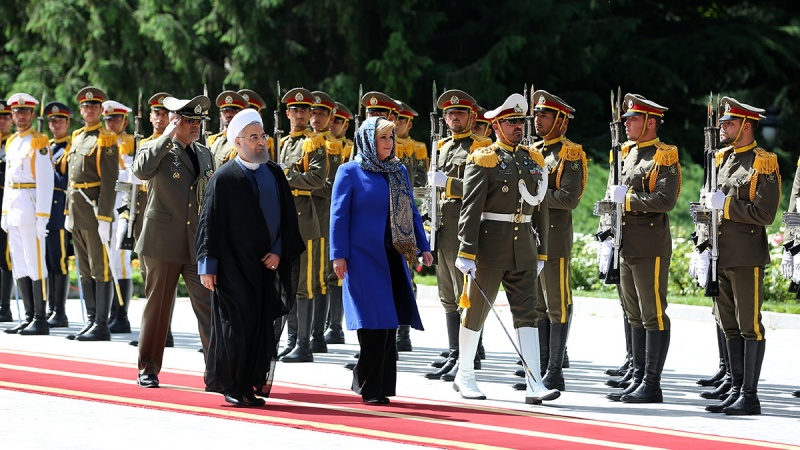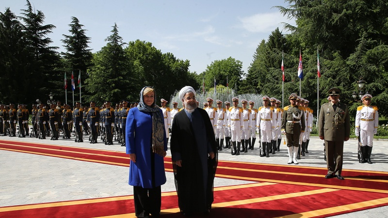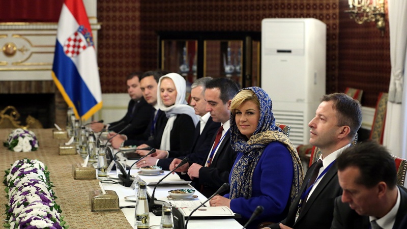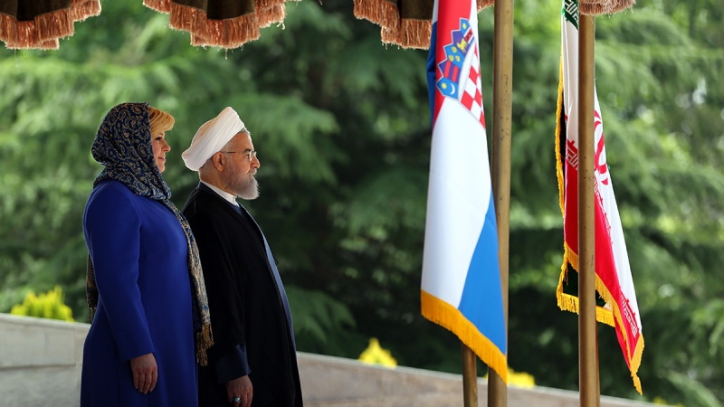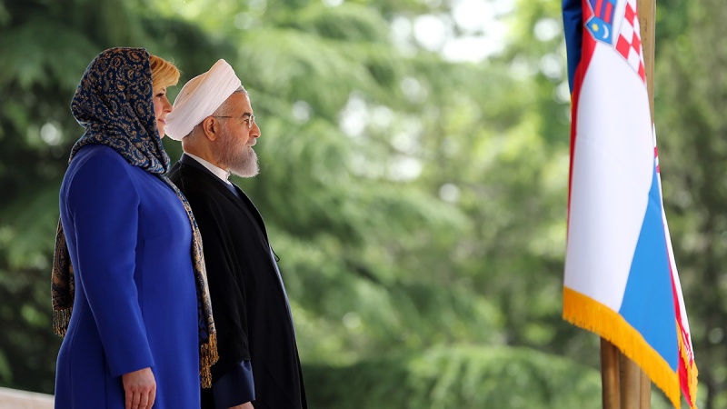 O presidente Hassan Rohani recebeu A presidente da Croácia, Kolinda Grabar-Kitarović, com uma cerimônia oficial de boas-vindas, no Palácio do Sadabad.