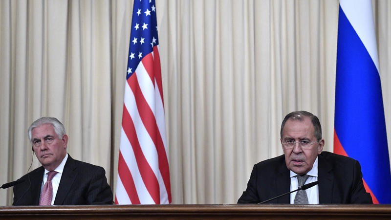 "Há um baixo nível de confiança entre nossos países. As duas maiores potências nucleares não podem ter esse tipo de relacionamento”, disse Tillerson, cuja visita a Moscou, a primeira de uma alta autoridade da administração dos Estados Unidos desde que Donald Trump tomou a presidência dos Estados Unidos, tem sido dominado por conflito sírio por causa da recente agressão dos Estados Unidos. Tillerson repetiu acusações anteriores do seu país sobre o uso de armas químicas por Damasco.