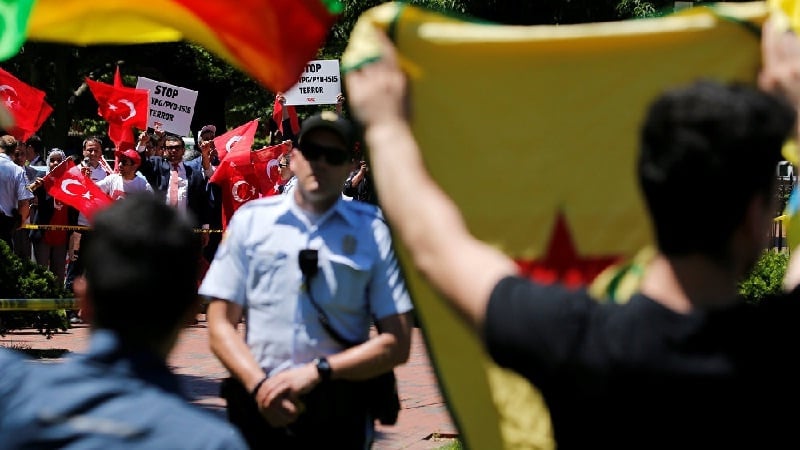 Pelo menos nove pessoas ficaram feridas e duas foram detidas na sequência de protestos em frente à embaixada da Turquia em Washington.