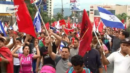 Jan. 30, 2018 04:33Pars Today- Enquanto os protestos continuam em Honduras contra a "fraude e irregularidades" a favor de Juan Orlando Hernández nas eleições presidenciais de novembro de 2017, um grupo de religiosos dos EUA pediu a Washington que acabasse com a ajuda militar e policial a este país centro-americano.