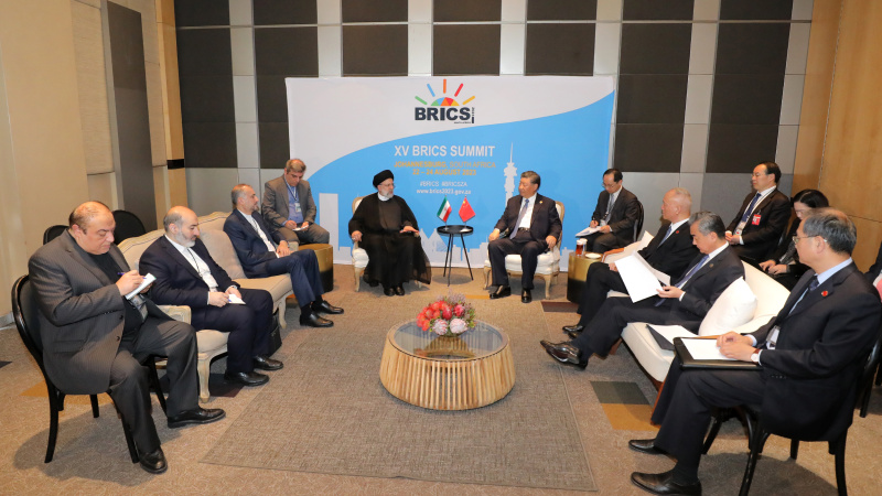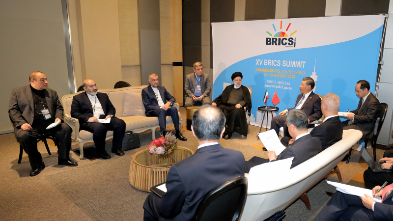 Президент Исламской Республики Иран сейед Ибрагим Раиси в четверг на полях 15-го заседания группы БРИКС в ходе встречи с председателем Китая Си Цзиньпином заявил, что членство Ирана в БРИКС укрепит принципиальные подходы этой группы, включая противодействие одностороннему подходу Соединенных Штатов.