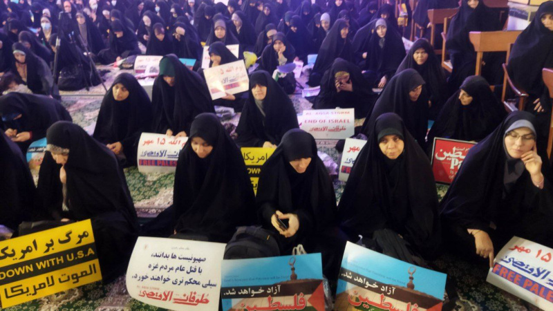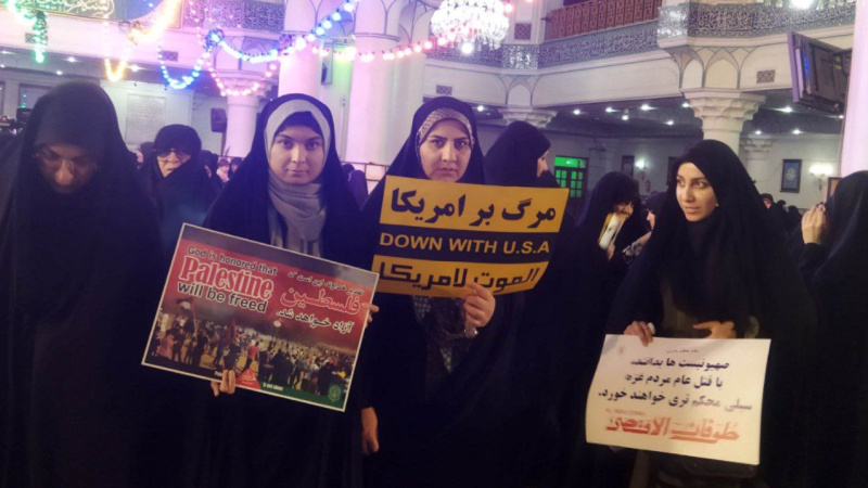 По данным информационного агентства Fars, студентки скандировали лозунги «Палестина победила, Израиль уничтожен», «Смерть сионистскому режиму, убивающему детей», и, заявив о поддержке фронта сопротивления и угнетенного народа Палестины, осудили жестокие убийства. палестинских женщин и детей.