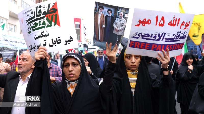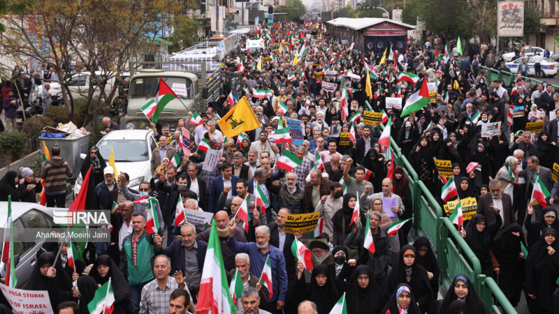 Народ исламского Ирана вышел на улицы в пятницу, как и в последние дни, чтобы поддержать угнетенную палестинскую нацию и осудить преступления сионистского режима.