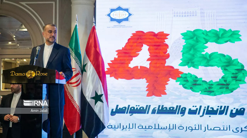 Как сообщает информационное агентство ИРНА, Амир-Абдуллахиан, выступая с речью в воскресенье вечером на церемонии по случаю 45 годовщины победы Исламской революции Ирана в Дамаске, заявил: "Мы очень рады, что отношения между Тегераном и Дамаском быстро развиваются, и хочу подчеркнуть в вашем кругу, что сегодня проходит церемония годовщины победы Исламской революции в то время, когда мы являемся свидетелями геноцида жителей сектора Газа со стороны сионистского режима".