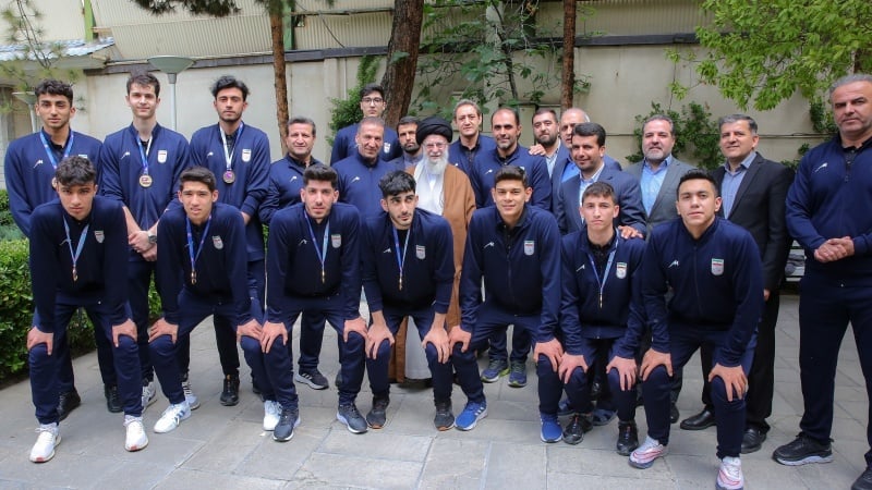 Вернувшись в Иран после победы на чемпионате мира, иранские волейболисты посетили аятоллу Хаменеи и сфотографировались с ним на память.