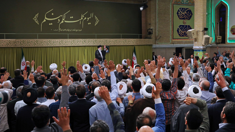 По сведениям информационной базы Офиса Верховного лидера Исламской революции, аятолла Хаменеи во вторник, одновременно с праздником Гадир-Хум, на встрече с тысячами людей разъяснил характеристики достойного кандидата, и призвал народ страны посетить кабинки для голосования и подчеркнул: «В выборах должны принять участие все, кто заинтересован в сильном и гордом Иране, и все, кто поддерживает режим".