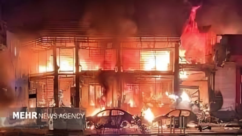 Общественное место, поврежденное в результате недавних беспорядков в Иране.
