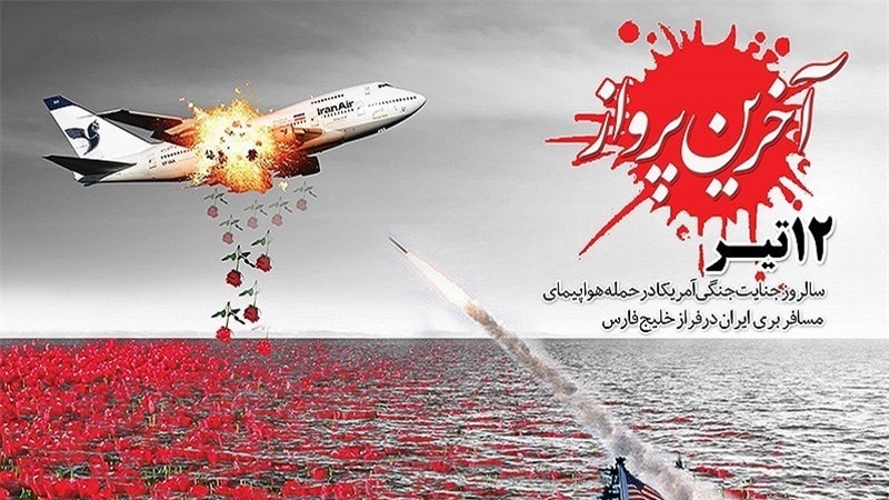Сегодня как и во все предыдущие годы место крушения самолета над водами Персидского залива осыпают цветами. Семьи жертв данной авиакатастрофы и руководство страны бросив в воды Персидского залива цветок чтят память жертв антигуманных преступлений США.
