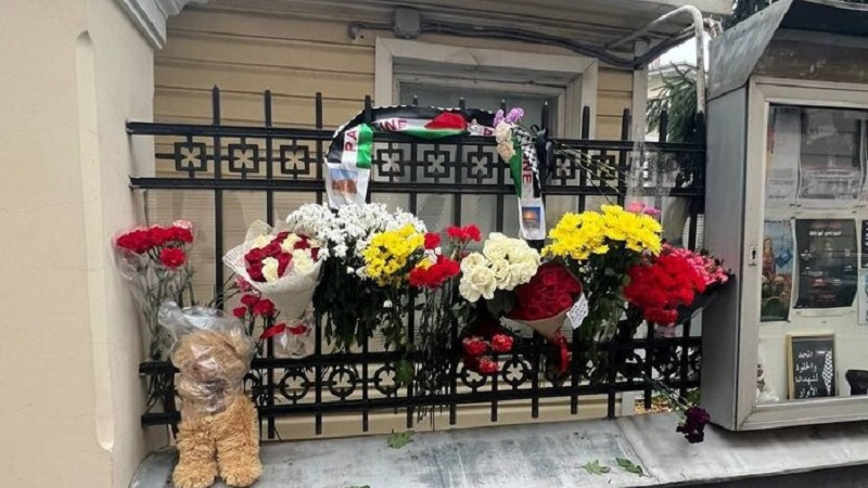 После недавних событий в Палестине и мученической гибели мирных жителей в результате бомбардировки сионистского режима, ряд людей из Москвы передали венки и послания сочувствия палестинскому посольству в России.