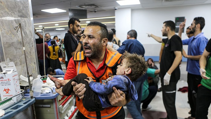 После военного преступления и варварского нападения сионистского узурпаторского режима на больницу в секторе Газа, геноцида угнетенного народа и убийства сотен невинных мужчин, женщин и детей правительство Исламской Республики Иран также осудило это безумный варварский поступок и объявил в среду публичный траур по всей стране.