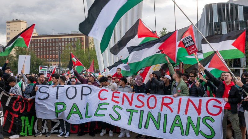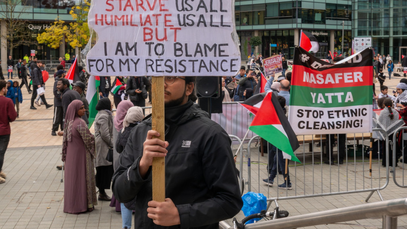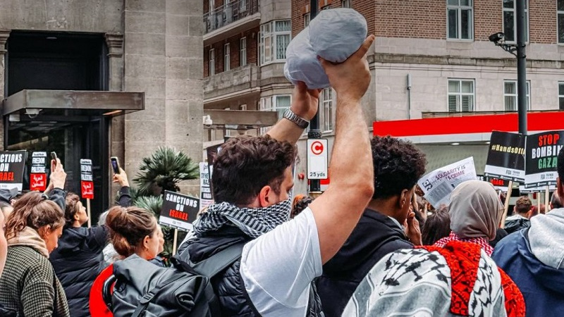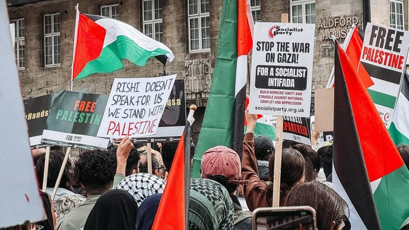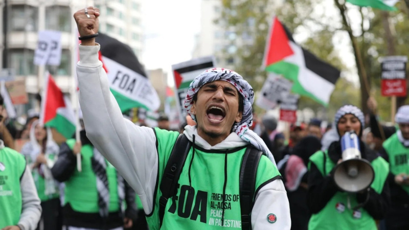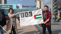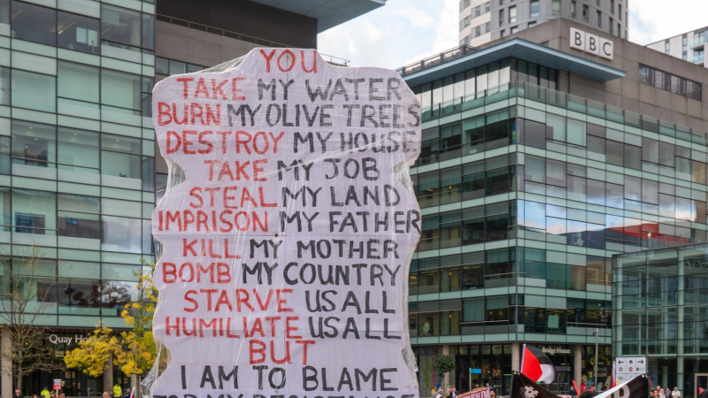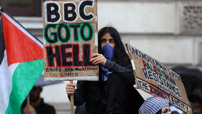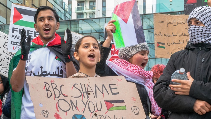 Сторонники Палестины в Британии, в свою очередь, провели массовый митинг перед штаб-квартирой BBC в Манчестере в знак солидарности с жителями сектора Газа.