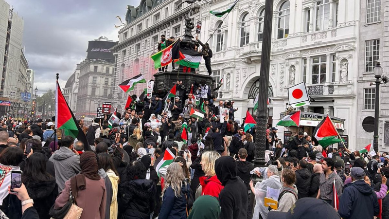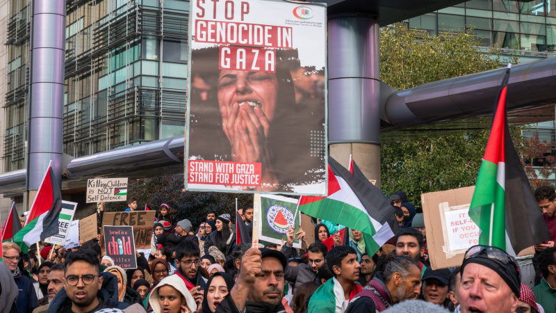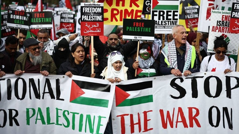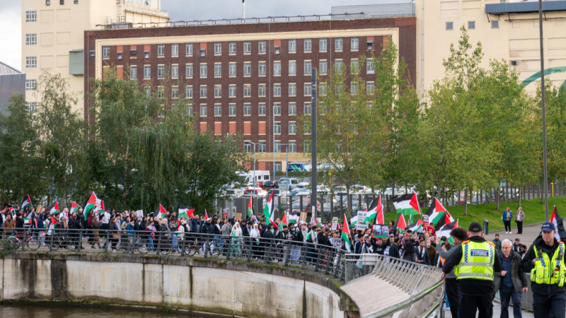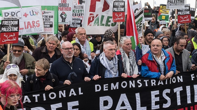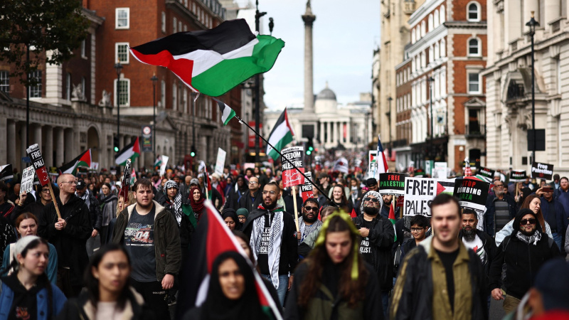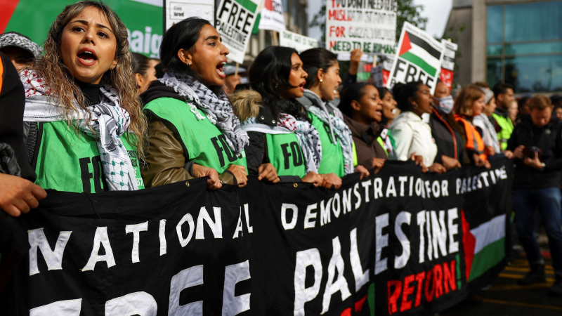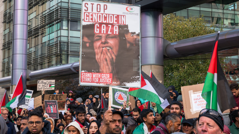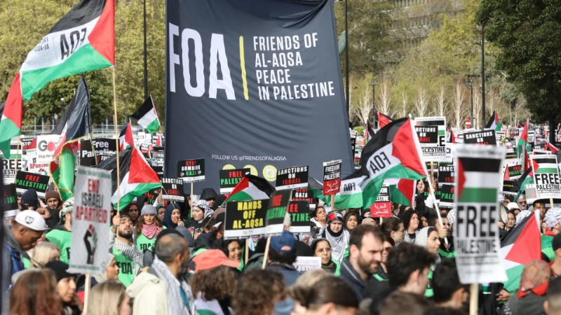 Сторонники Палестины в Британии, в свою очередь, провели массовый митинг перед штаб-квартирой BBC в Манчестере в знак солидарности с жителями сектора Газа.