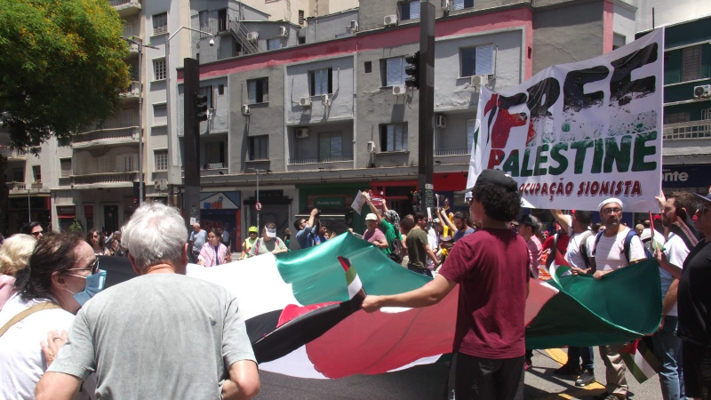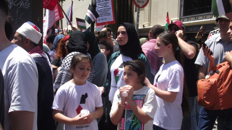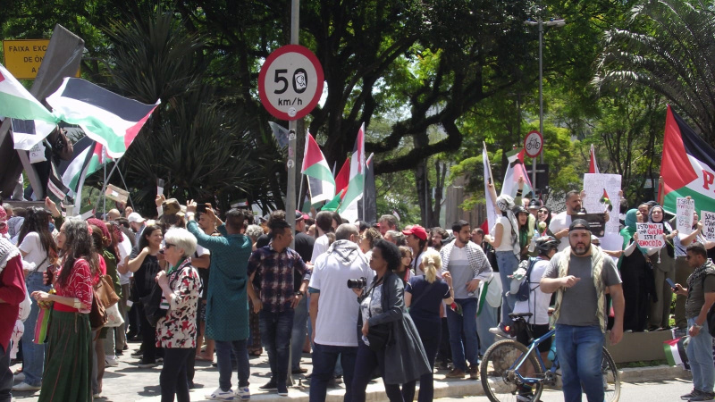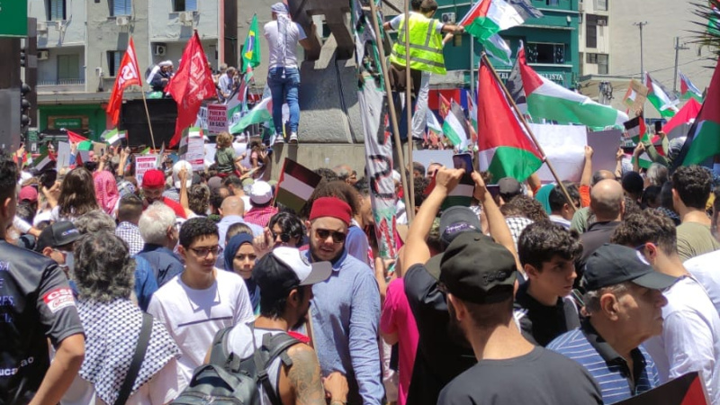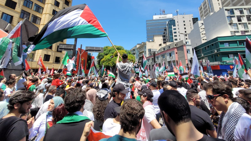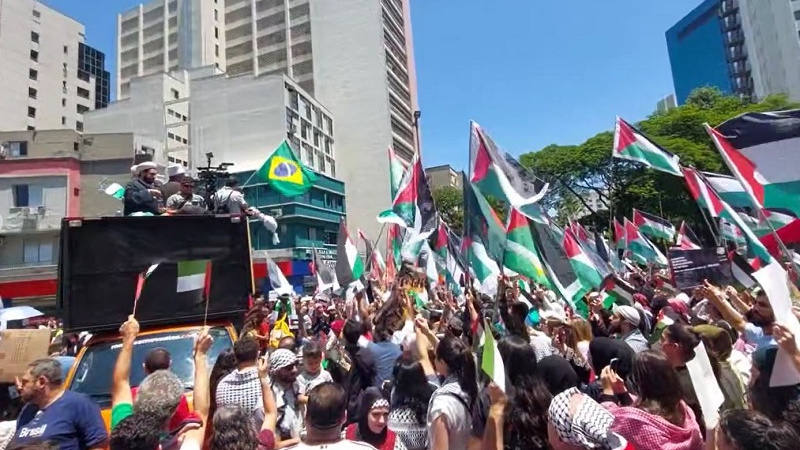 Сторонники Палестины разных национальностей, собравшиеся на улице Паулиста в центре Сан-Паулу в Бразилии, осудили преступления сионистского режима в секторе Газа.