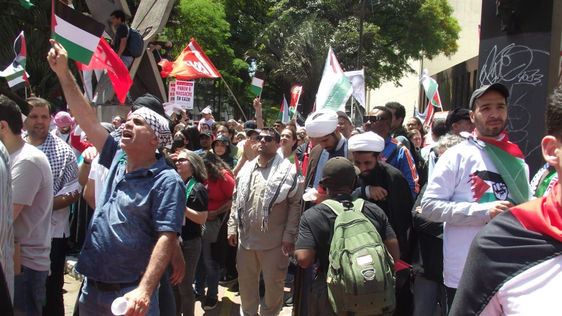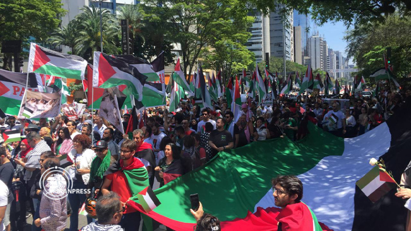 Сторонники Палестины, особенно иранцы, живущие в Бразилии во вторник приняли участие в массовом митинге. Участники акции протеста, неся с собой флаги Палестины, выразили солидарность и сочувствие палестинцам, живущим в секторе Газа.